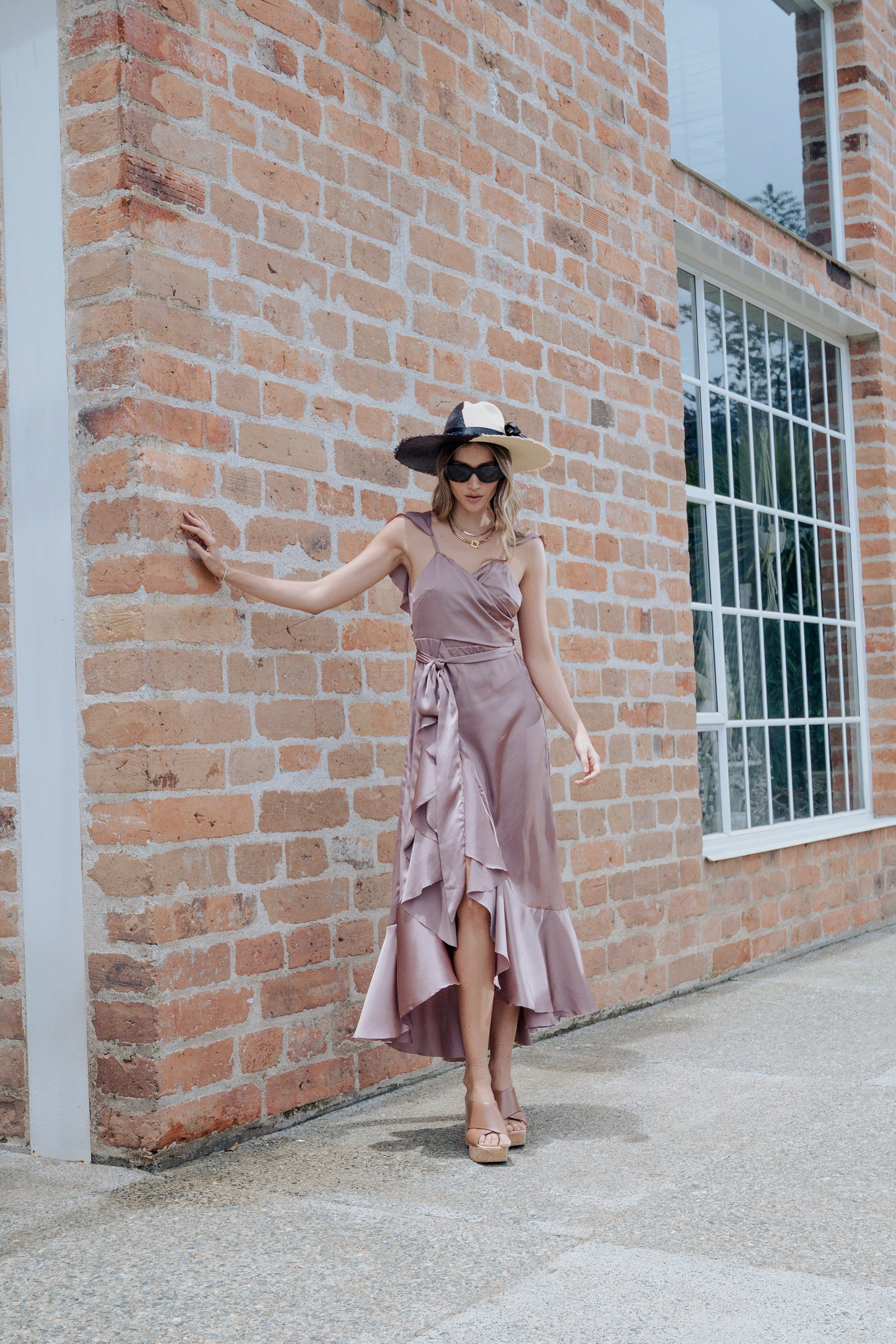 GLORIA WRAP DRESS WITH CAPE - SATIN SILK