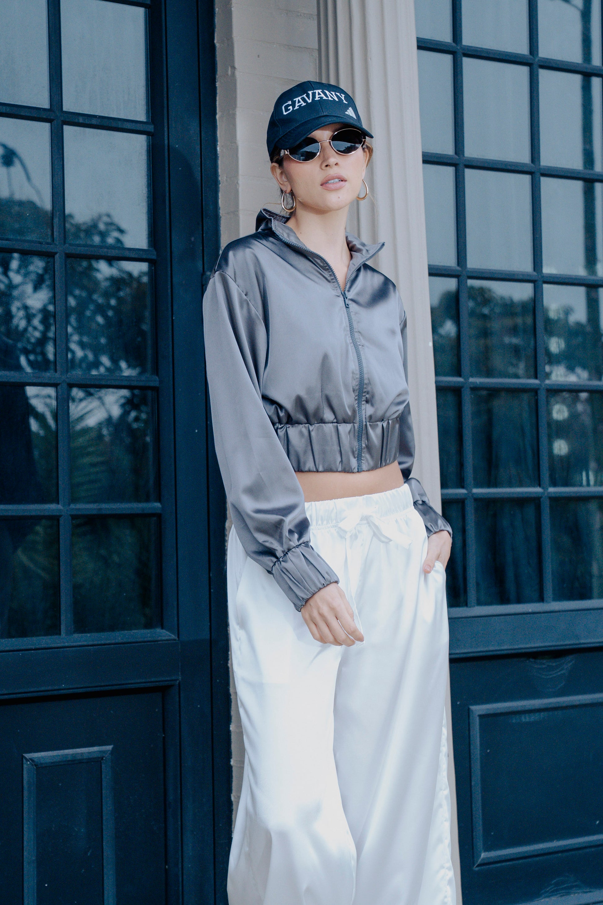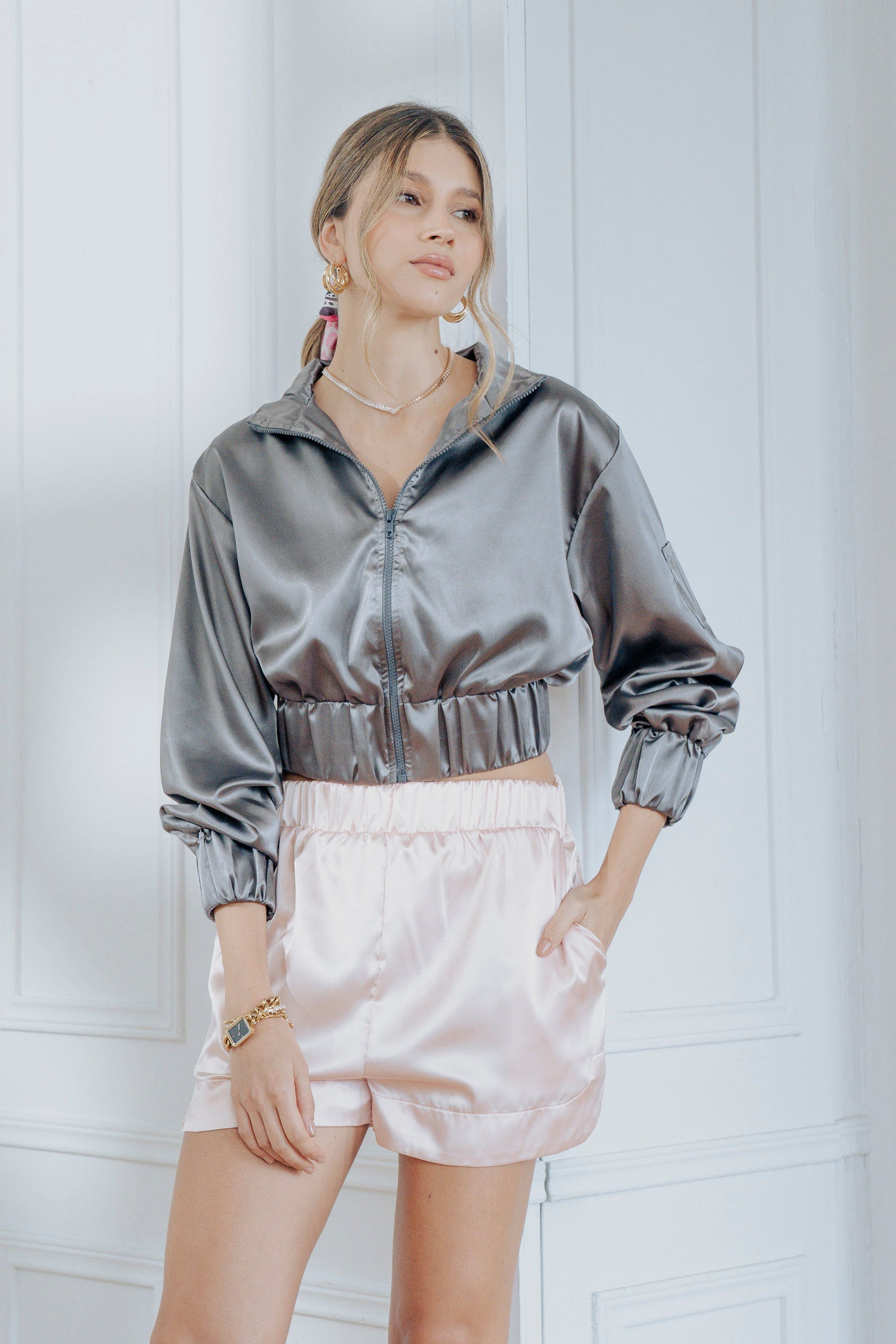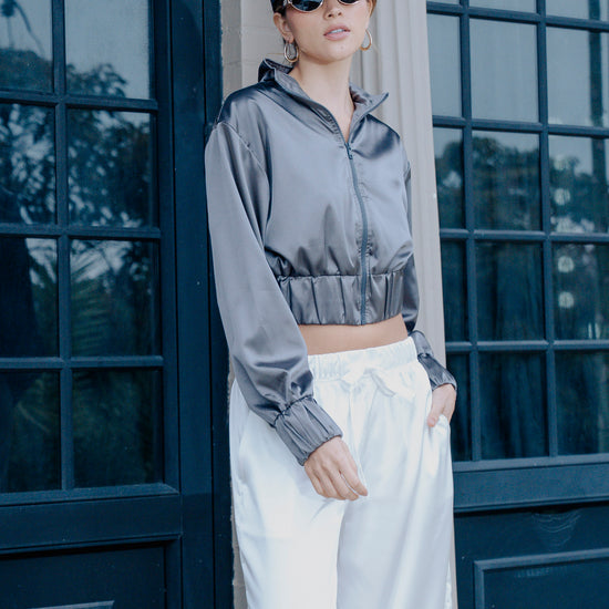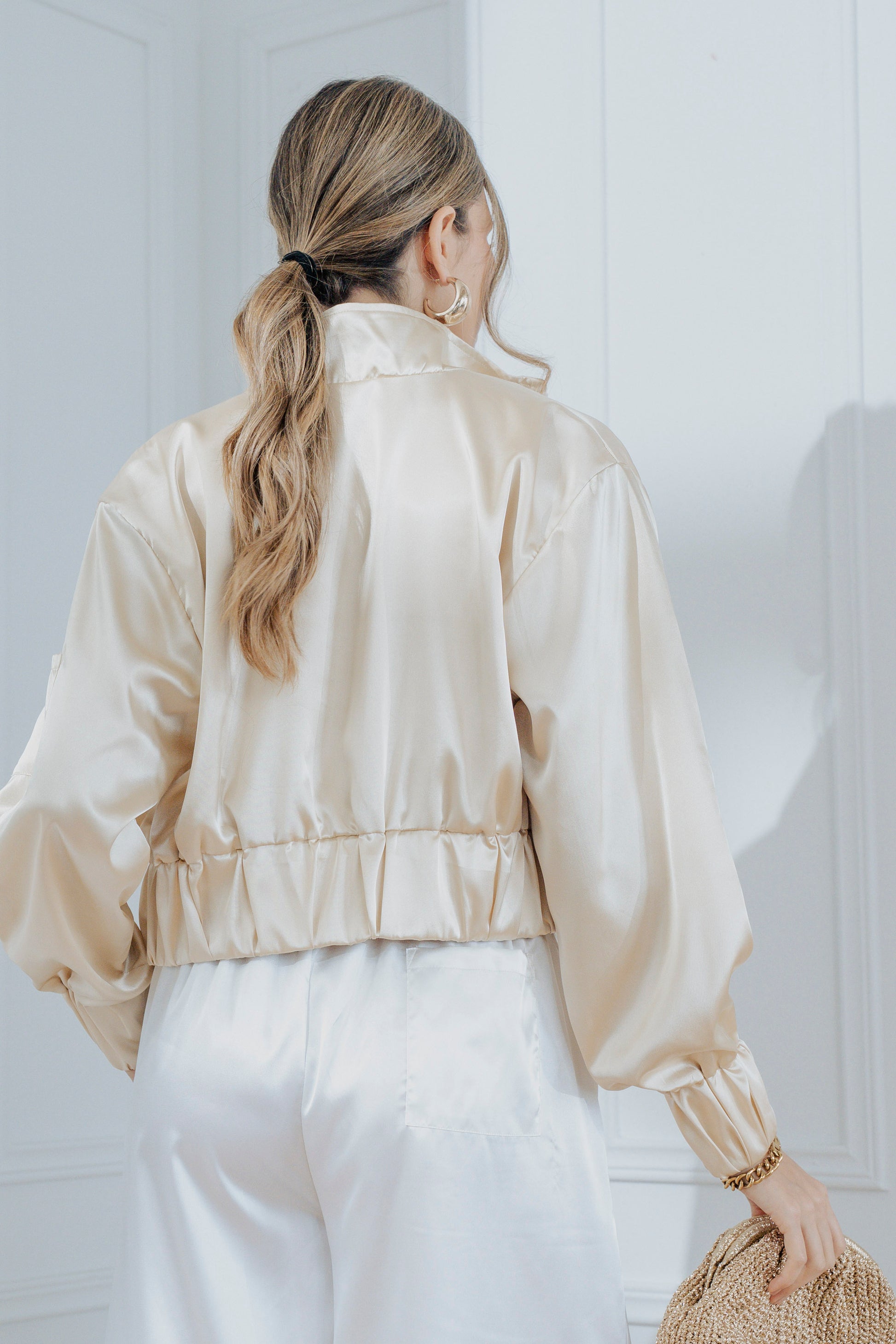 Sporty, sleek, and undeniably feminine. The Luisa Bomber redefines resort outerwear with its silk satin finish and soft structure. Designed for movement and sophistication, it pairs perfectly with pajama sets, linen trousers, or your favorite shorts. Chic, lightweight, and made to shine from day to night.