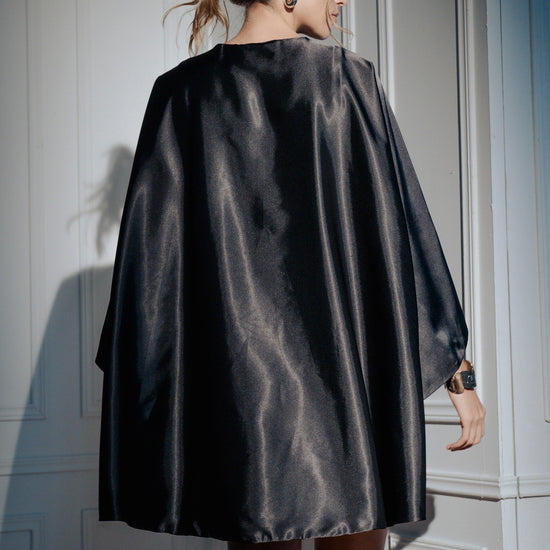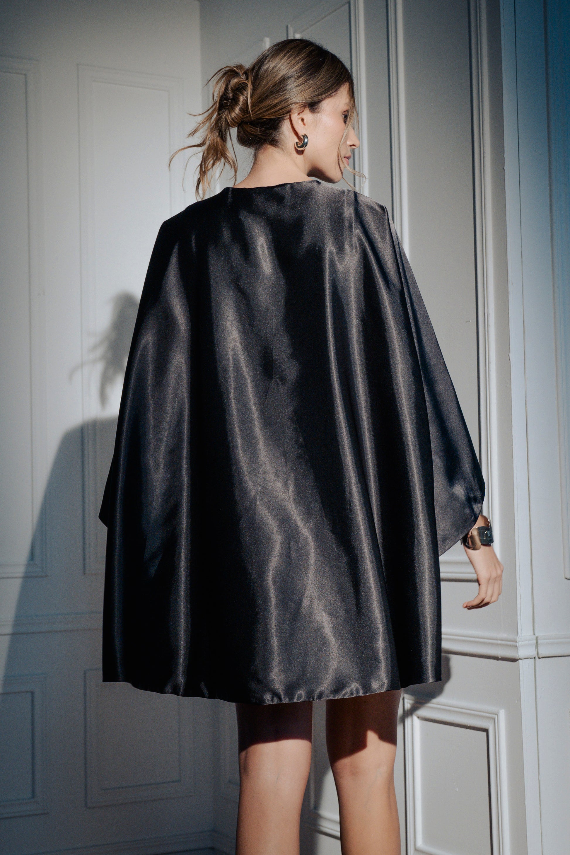 Make an unforgettable entrance with the Ally Cape, designed in featherlight silk satin-touch fabric. The high-low silhouette adds instant drama, whether you’re heading to a yacht party, fashion brunch, or elegant dinner.